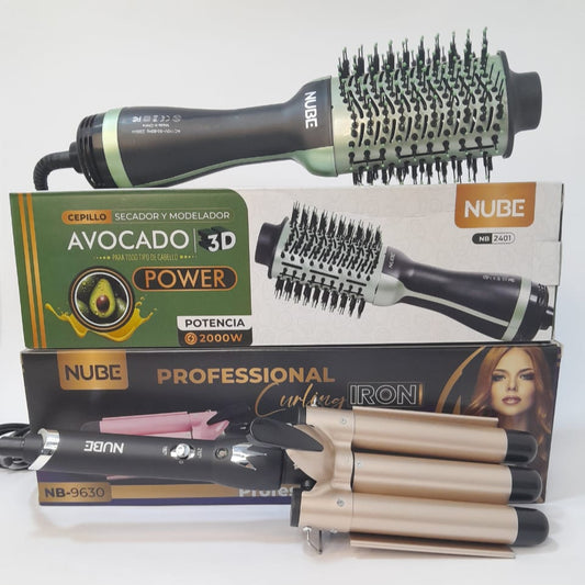 Combo Ondulador 3 tubos + Cepillo secador